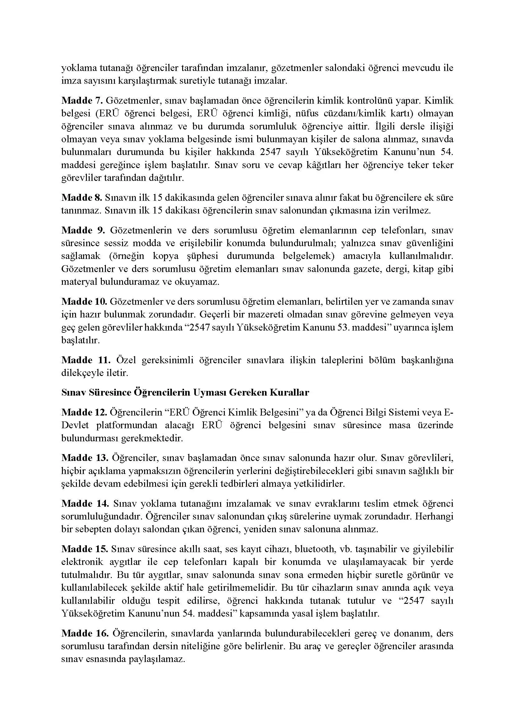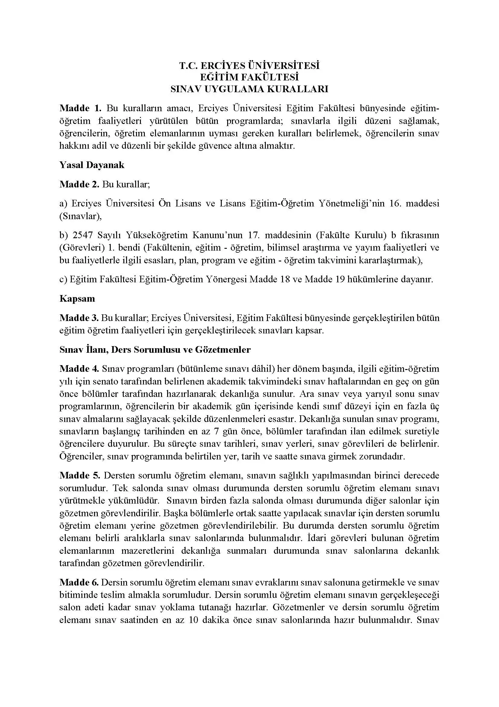 Eğitim Fakültesi Sınav Uygulama Kuralları